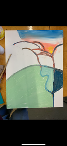 These paintings move along so quickly that there is not a large amount of progress to document. Most of the work on this painting was done in under 2 classes, but I think that it is definitely an improvement over my last painting> The composition is far more dynamic, and the shapes are clearly defined and contrasted without feeling cluttered. The main problem that I think I have with this painting is that some sections still feel far less resolved than others. In the future, I will focus on more planning to improve my craft, as well as individually resolving each section as fully as I can.
